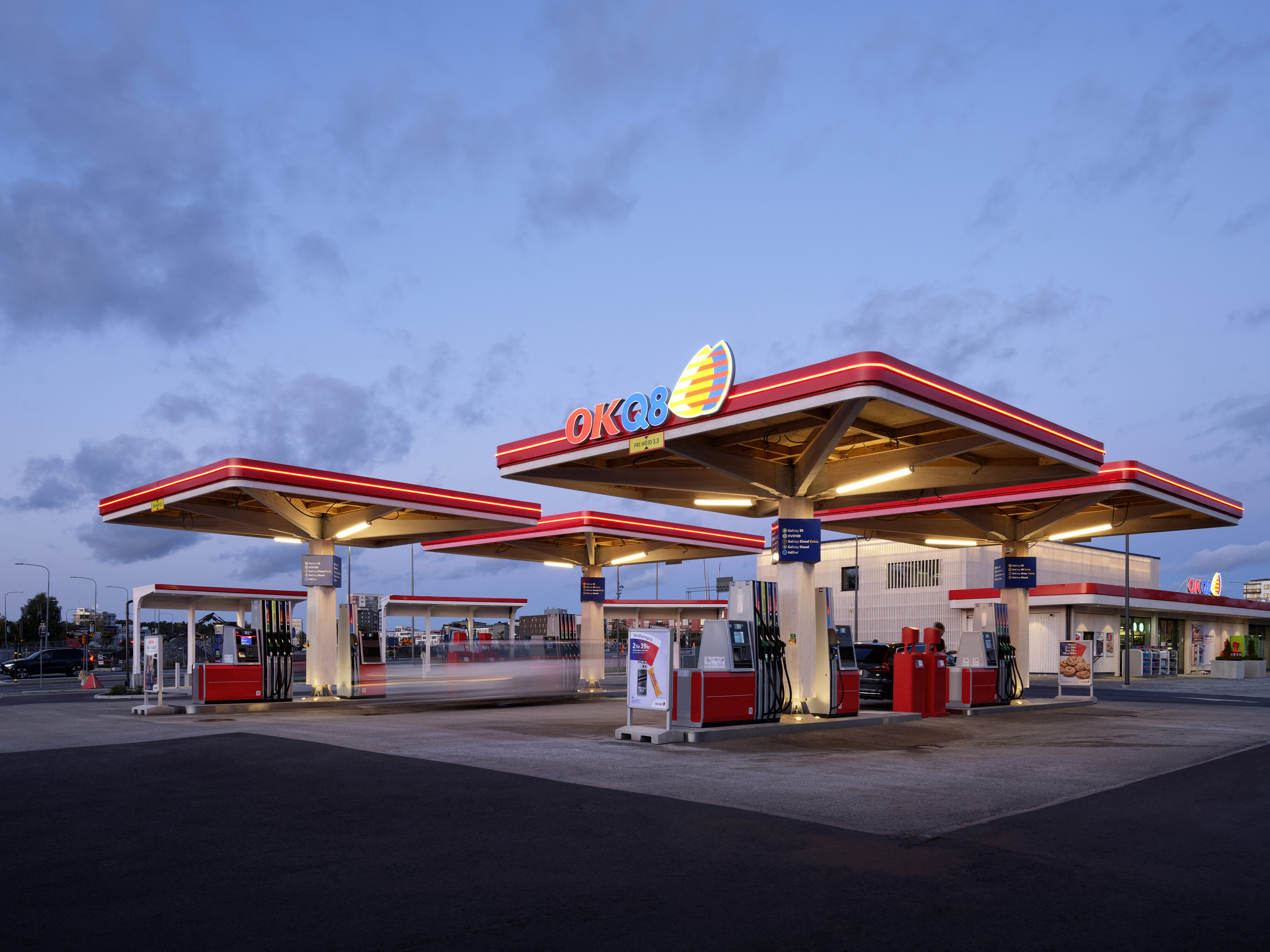 I takt med utfasningen av fossila bränslen, ökad urbanisering och förändrade resmönster omdefinieras också macken. OKQ8:s framtida servicestation blir en mötesplats för människor i rörelse – oavsett fordon. Här kombineras laddning, service och handel med loungeliknande miljöer för väntande resenärer, service för allt från bilar och cyklar till barnvagnar och rullskidor. På så sätt fortsätter OK ekonomisk förening och OKQ8 att anpassa sitt erbjudande och hålla verksamheten i rörelse, även i en snabbt föränderlig framtid.